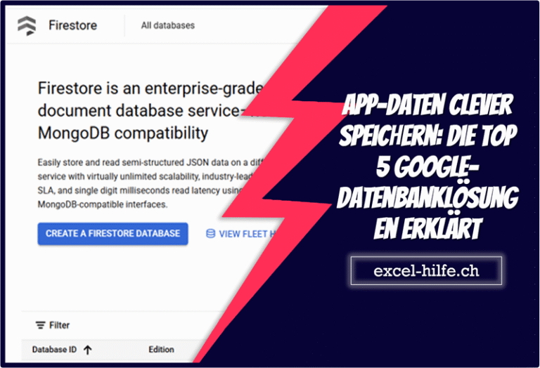 App-Daten clever speichern: Die Top 5 Google-Datenbanklösungen erklärt Beim Erstellen von Apps im Google-Ökosystem ist die Auswahl der richtigen Datenbank wichtig. Verschiedene Google-Datenbanken erfüllen unterschiedliche Anforderungen — von einfachen Tabellenkalkulationen ...