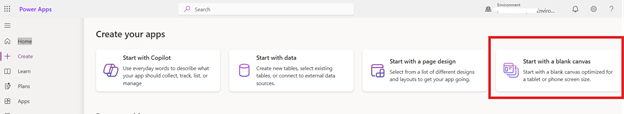 Schritt 4: Wählen Sie auf der Seite „Apps erstellen“ die Option „Mit einer leeren Leinwand beginnen“ aus.